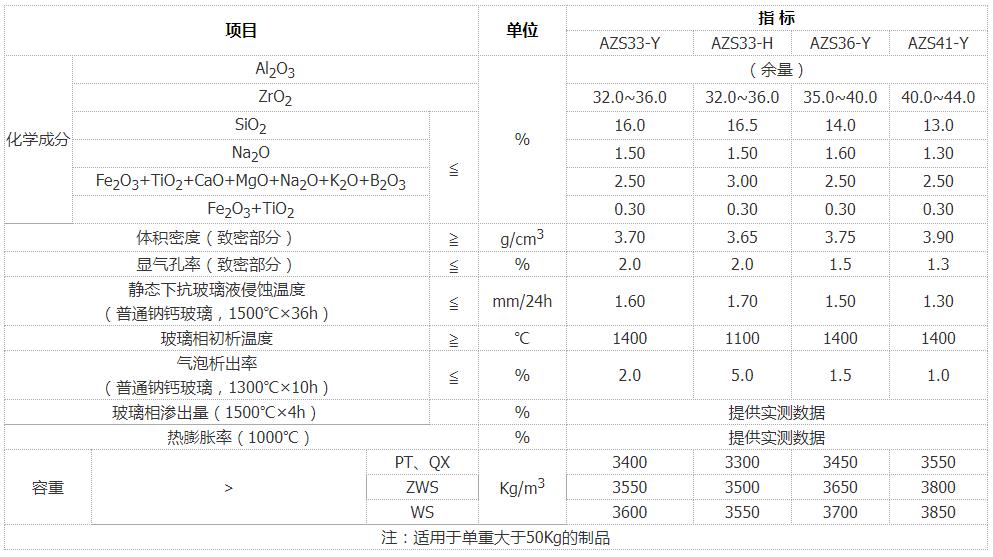 33# 36# 41# 電熔鋯剛玉磚理化指標(biāo)