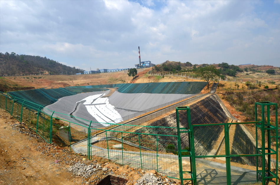 安全填埋庫區(qū)一期設(shè)計總庫容約21.0×10?m3;可滿足10a服務(wù)年限的填埋要求。安全填埋庫擋壩采用加筋土石壩,水平防滲系統(tǒng)采用雙人工襯層結(jié)構(gòu),滲瀝液和次滲瀝液重力流至下游的滲瀝液調(diào)節(jié)池,滲瀝液產(chǎn)量12t/d,滲瀝液調(diào)節(jié)池有效容積1200m3