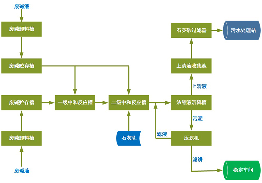 物化處理采用酸堿中和工藝,殘渣進(jìn)入固化車間處理,液體則進(jìn)入廢水處理站繼續(xù)處理。